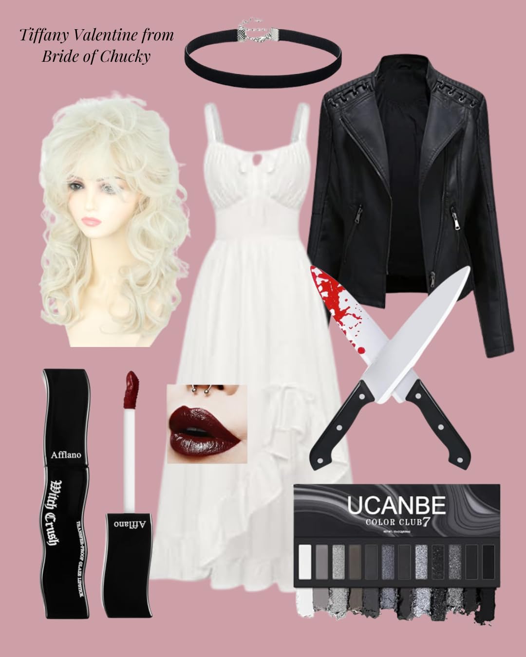 3. The Bride of Chucky wedding gown dress with play-safe fake knife set. The lip gloss makes this look!