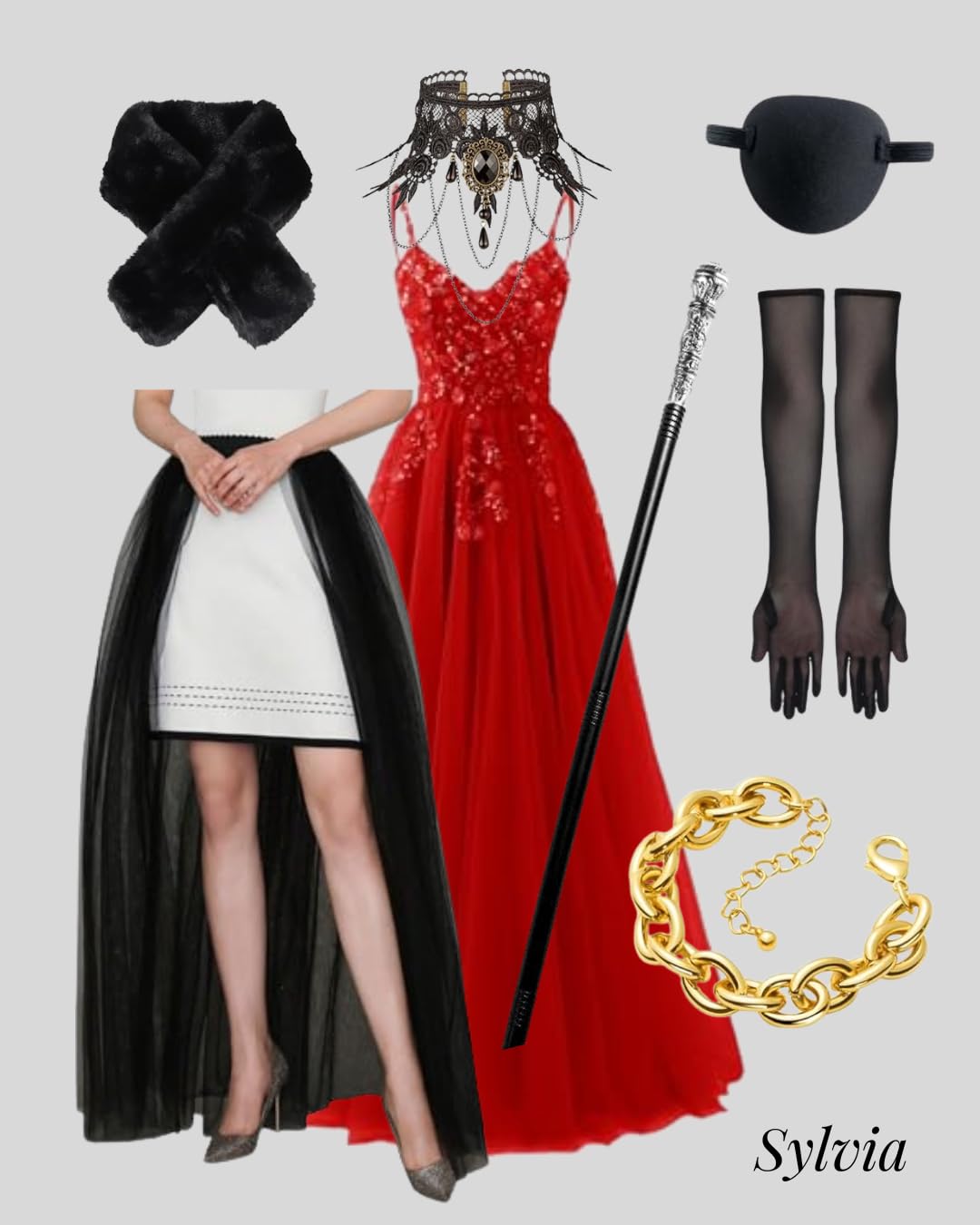 Sylvia rules the stage like gothic royalty, draped in crimson gowns, dripping in black lace and gold chains, and armed with a jeweled staff that says “I serve the Grand Immortal Dictator, but I’ll do it fabulously.” She’s decadent, dangerous, and every bit the dark aristocrat of Draag’s twisted empire.